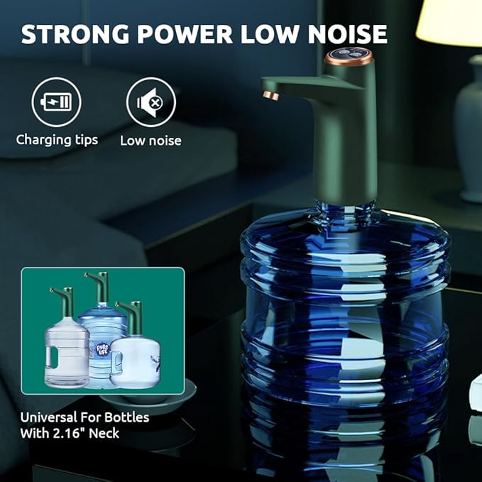 - [EASY TO USE]: Too heavy to lift and flip the water bottle onto the dispense machine? With this elegant water bottle pump, you can enjoy refreshing water by simple installation and touching the switch. No lifting or flipping anymore when you want to replace a new water bottle. The automatic water dispenser is easy to operate and save your time. Notice: Please charge water pump dispenser in time to avoid insufficient water outlet caused by power short.